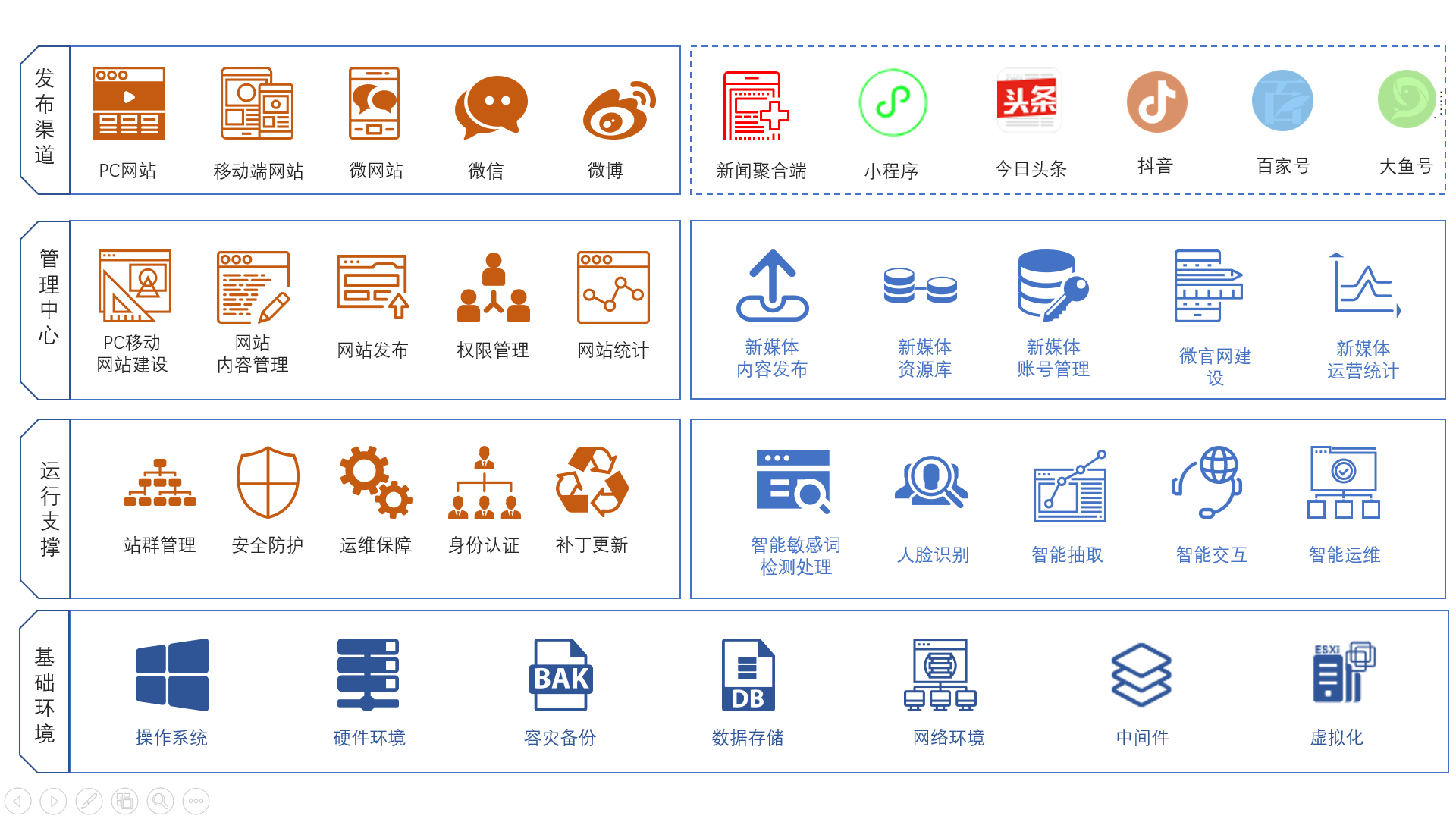 博达全媒体网站群管理平台V12,是西安博达软件股份有限公司(“简称博达软件”)自主研发。以“全方位、智能化、大融合”为设计理念,对全媒体生产发布的进行管理,实现媒体素材的多渠道采集汇聚、统一编辑加工入库、各平台素材多元发布、传播效果统一监测分析的全媒体管理平台。