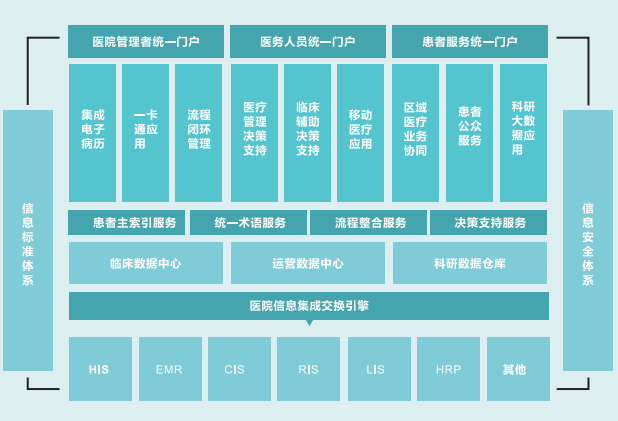 通过建立标准的数据交换和集成,将原先分布在各业务系统中的信息交换整合到集成平台,实现医院各个科室之间信息的互联互通,消除信息孤岛,使信息数据实现充分的共享,以优化医院业务流程,减少患者无效等待的时间,最大限度地方便病人就医。同时医院可以在统一的平台上进行数据的挖掘和分析,为实现大数据分析提供数据基础,为医院管理一站式决策支持创造条件,为医院信息互联互通标准化成熟度测评和电子病历系统应用分级评价奠定基础