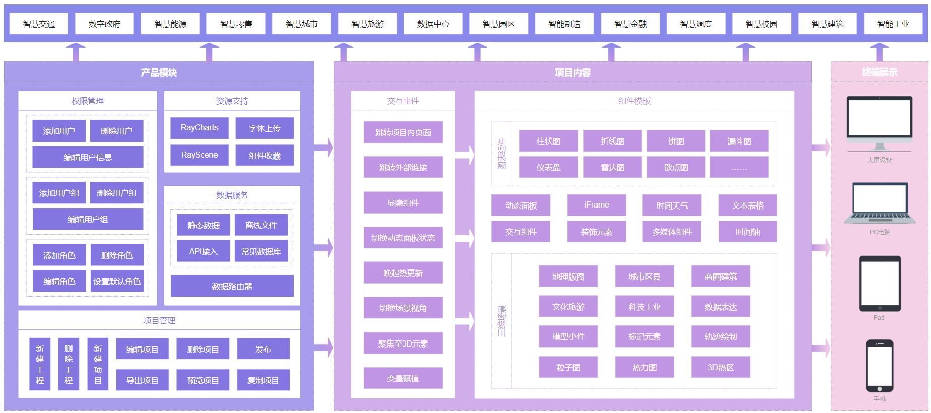 RayData Web是一款基于B/S架构的、面向企业级用户的专业可视化编辑工具,具有强大的项目管理和编辑能力,支持更精细的权限分配、更自由的项目搭建、更全面的开发拓展。应用于各种数据分析与展示场景中,针对行业提供优质的可视化解决方案,满足用户对更自由、更强大、更全面的可视化大屏编辑工具的需求。